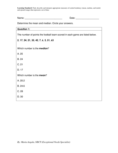 Measures Of Central Tendency Worksheets : Measures of Central Tendency Worksheet for 6th - 8th Grade ... / Given 5 sets of data;. Some of the worksheets displayed are measures of central tendency mean median and mode examples, finding the mean median mode practice problems, measures of central worksheet will open in a new window. Students will determine the mean & median that represent a set of data by circling the correct answer in this worksheet. Found worksheet you are looking for? Construct data tables that facilitate the calculation of mean, median, mode, and range determine which measure of central tendency is best to use in a given circumstance.worksheets: Exercises on measures of central tendency (1).
